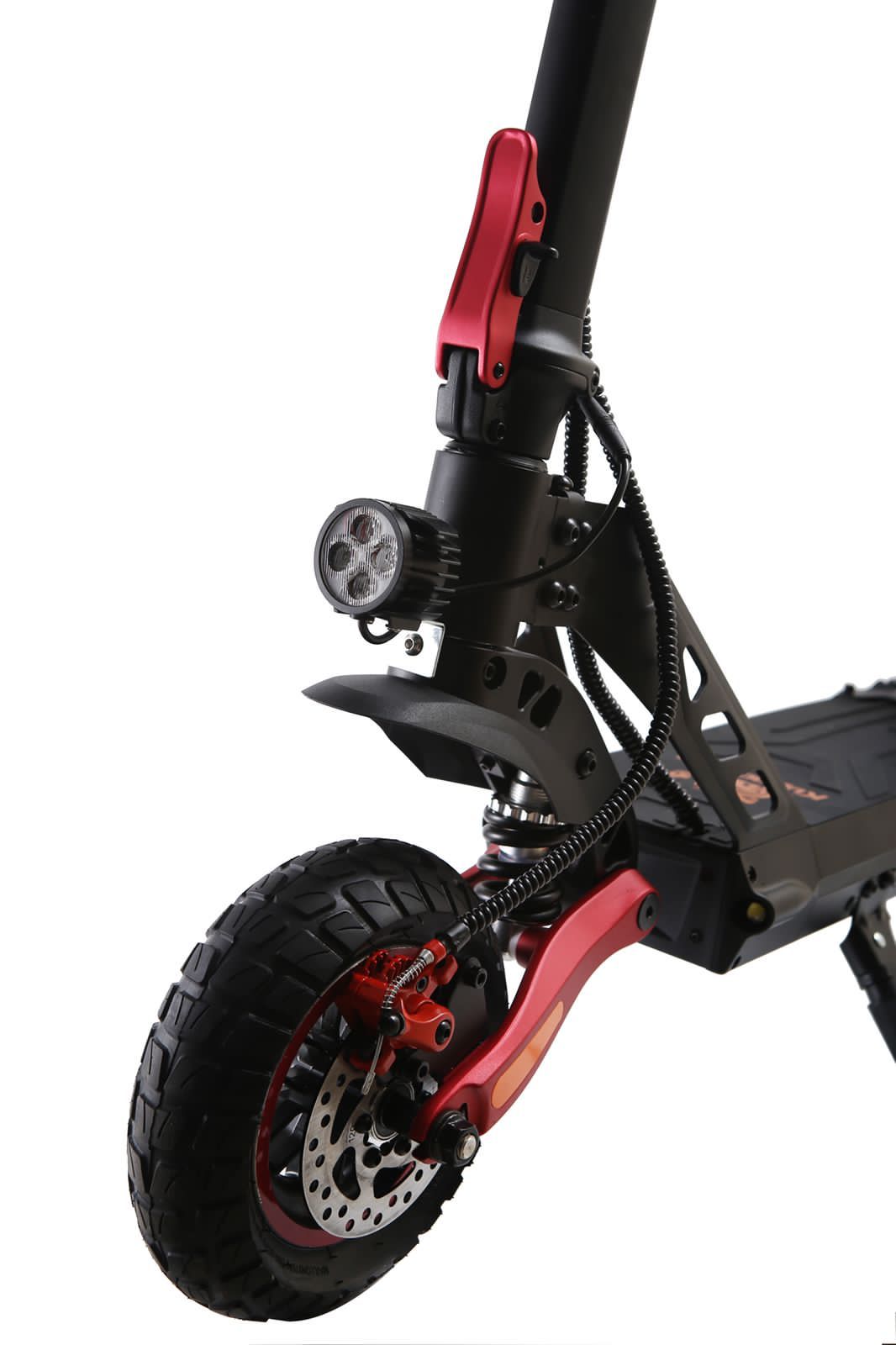 Модель оснащена амортизаторами, благодаря которым она мягко преодолевает неровности. Также мотор-колесом на 800W, что позволит разгоняться до 45 км/ч., большим функциональным дисплеем и не только!