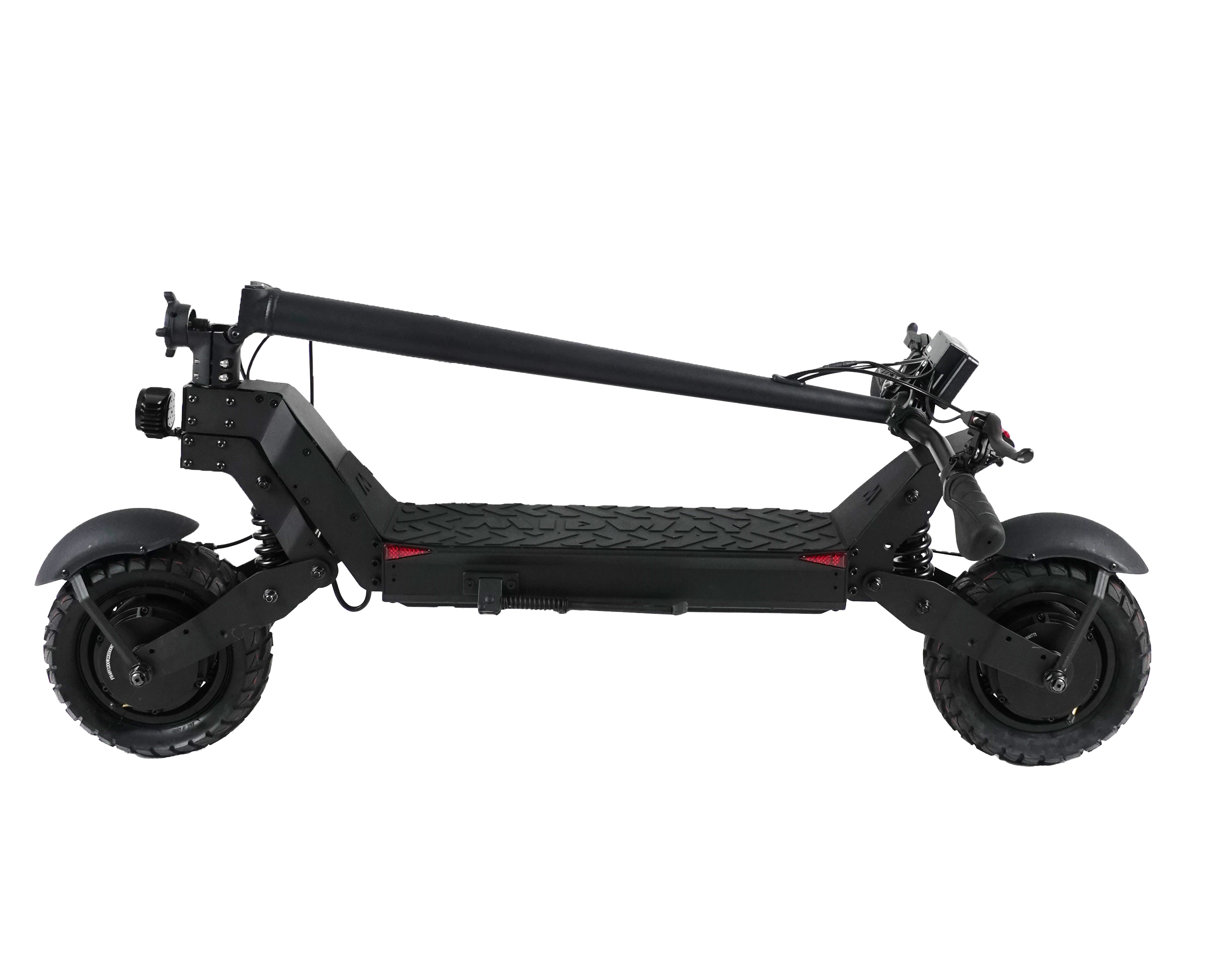 Два электродвигателя совокупной мощностью 2000 ватт и позволяет развивать скорость до 50 километров в час. При такой мощности райдер может спокойно заезжать на подъёмы под углом до 20 градусов. Аккумуляторная батарея ёмкостью 18 ампер-часов позволит проезжать без дозарядки до 45 километров. Для того, чтобы полностью зарядить батарею, потребуется около 4-6 часов. Колёса электротранспорта надувные, диаметром 10 дюймов, имеют ярко выраженный внедорожный протектор. Передняя и задняя амортизация отлично сглаживает все неровности дорожного покрытия, делая поездку мягкой и комфортной.
