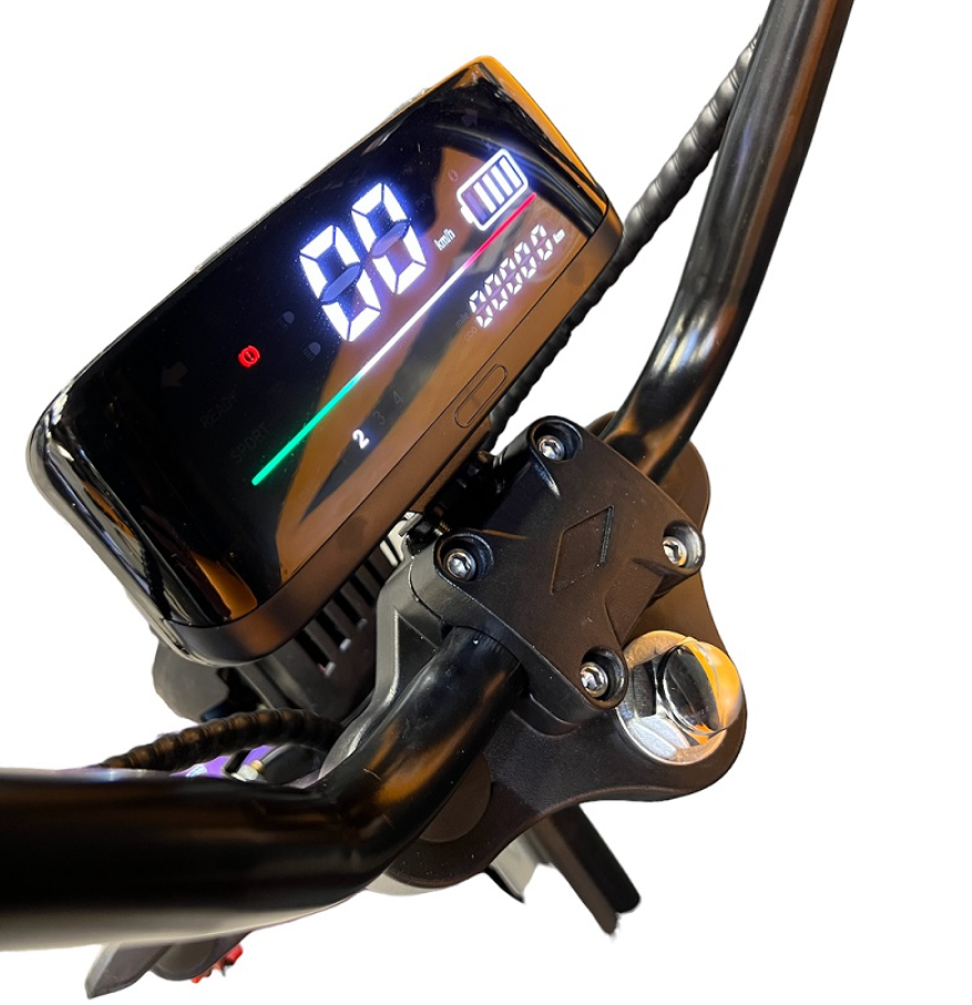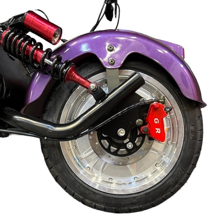 Он оснащён двигателем в 4000W, что обеспечит резкое ускорение и плавное движение по дороге, а батарея на 25Ah - максимальный пробег до 50 км., на одном заряде. Также у него задний привод, дисковые гидравлические тормоза и стальная конструкция.